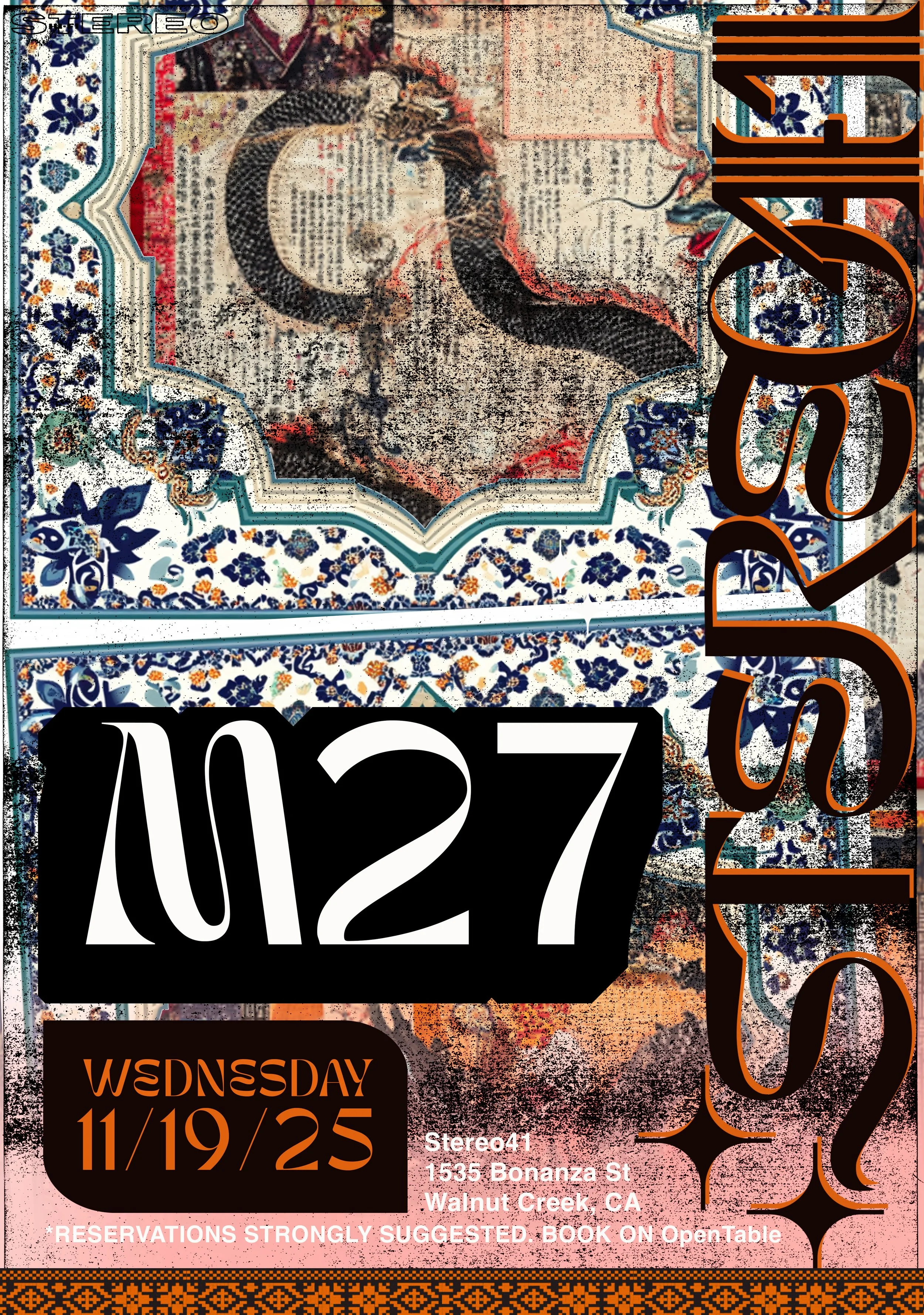 M27, From his background in Los Angeles hip-hop culture, fuses the skill set of a classic turntablist with his love of euphoric 90s rave music. With a selection of roots hardcore and jungle, he cuts, chops, and serves jungle breaks on a pair of classic technics turntables and Vestax battle mixer. M27 moved to the Bay Area in late 2011 after a long stint in Los Angeles working with Futurebound Radio and the Back to Basics jungle monthly.